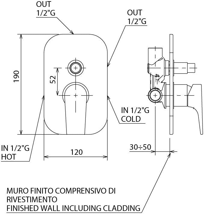 La Torre Cintya Miscelatore doccia incasso con deviatore a pulsante completo