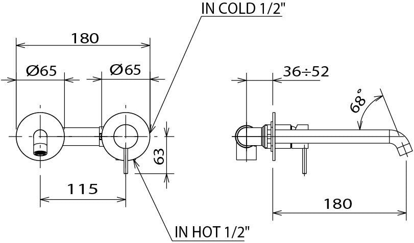 La Torre Elle Miscelatore lavabo a parete 2 fori completo L 18CM