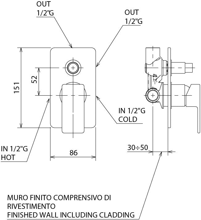 La Torre Profili Miscelatore doccia incasso completo con deviatore a pulsante