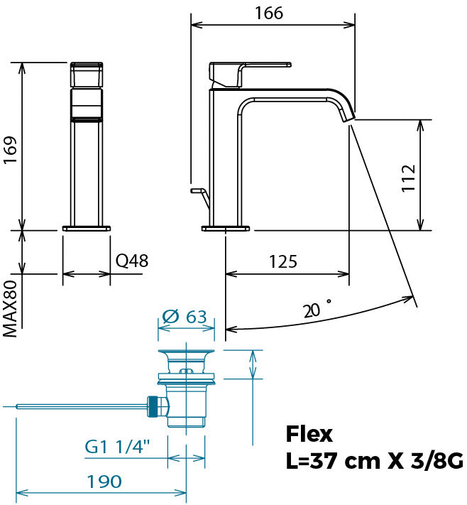 La Torre Profili Miscelatore lavabo piccolo canna curva